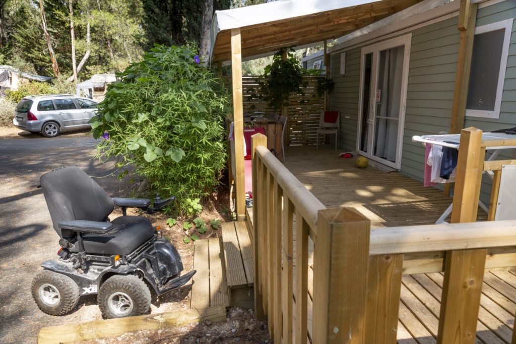 Die wunderschönen barrierefreien Mobilhäuser Privilège® mit Klimaanlage sind speziell für Menschen mit Handicap (für Menschen mit beschränkter Mobilität) eingerichtet worden und stehen auf grossen, schattigen Stellplätzen.
