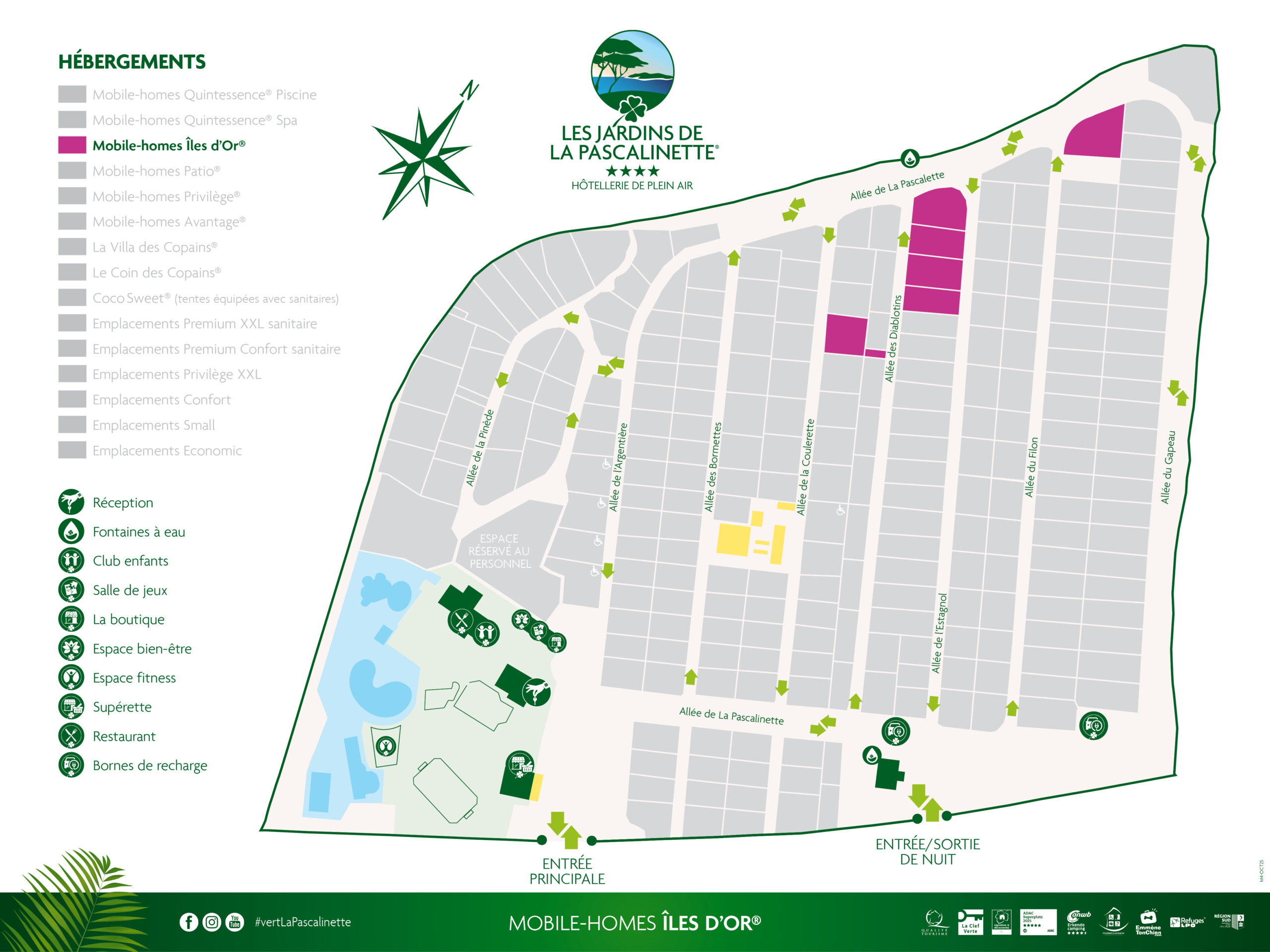 Wo befinden sich die Mobilhäuser « Îles d’Or »® auf dem Lageplan vom Campingplatz?